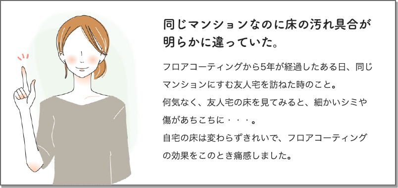 フロアコーティングの自然な剥がれや、ゴミかみなどを無償にて保証いたします。遠慮なくお申し付けください。